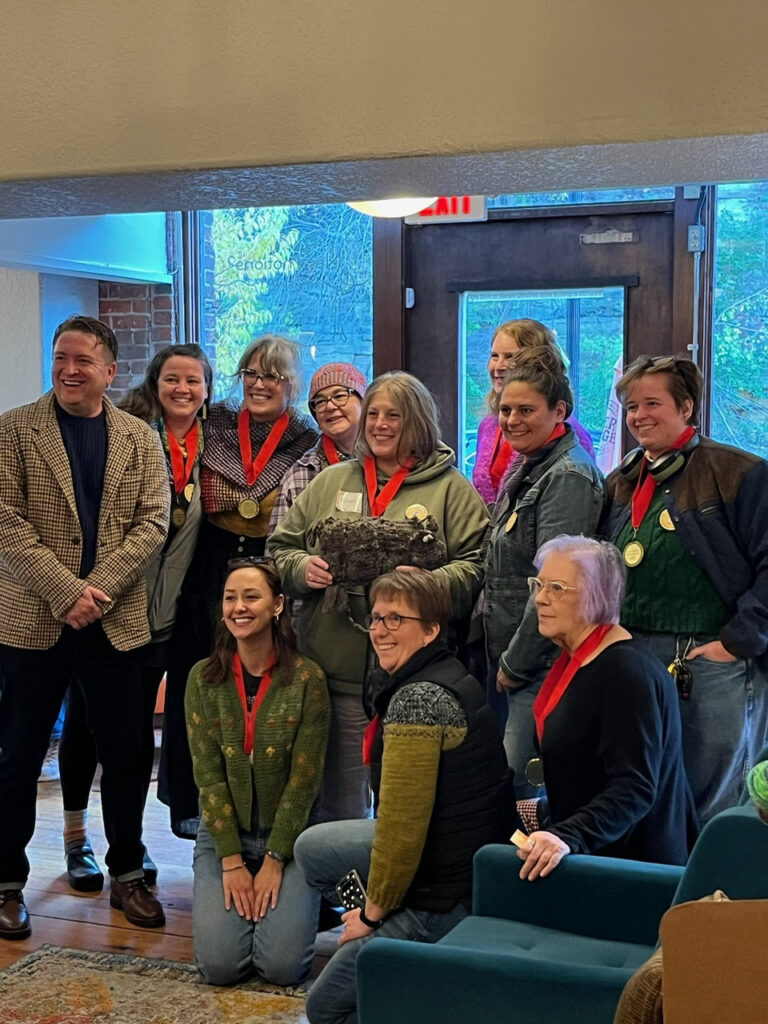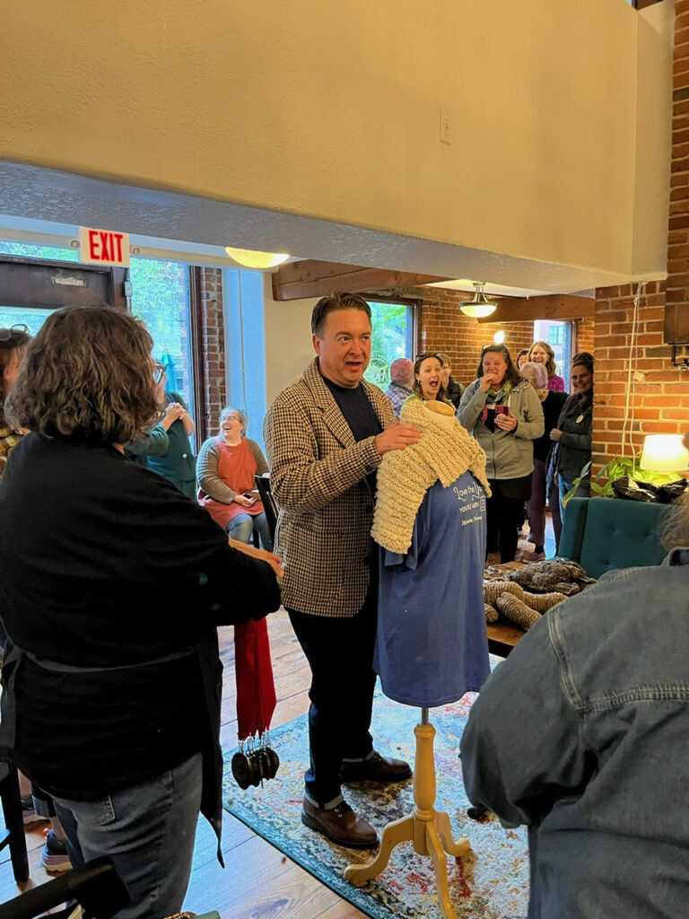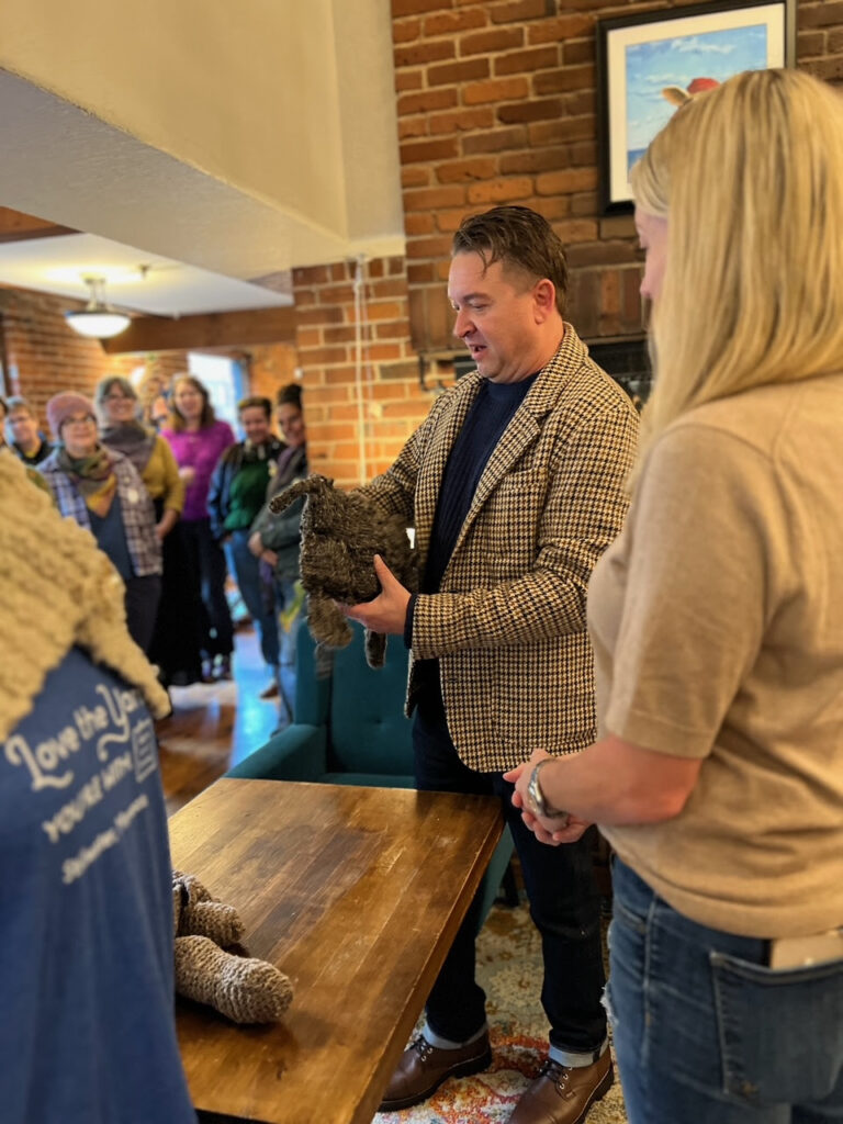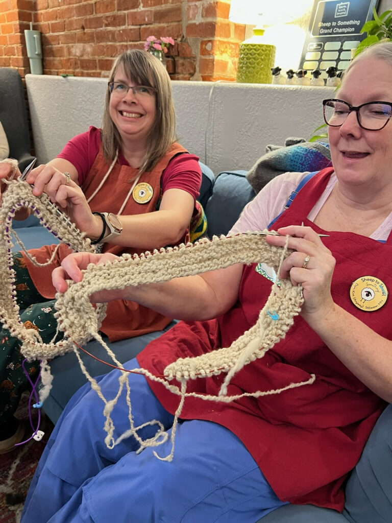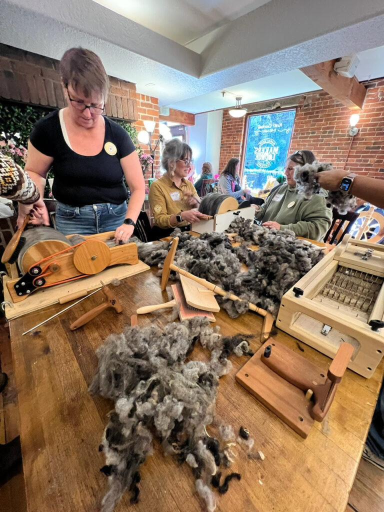 Sheep to Something weekend was everything we’d hoped it would be! The competition included selecting our fleece, preparing the wool by combing and carding, and then spinning it into yarn! We started at 11am and it was needles and hooks down at 4pm. There was some trash talk, some cowbells, and yes, a kazoo. The mayor of Stillwater judged the competition. |