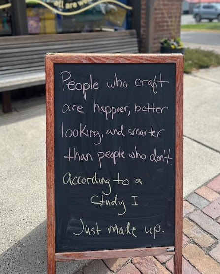 “People who craft are happier, better looking, and smarter than people who don’t. According to a study I just made up!”