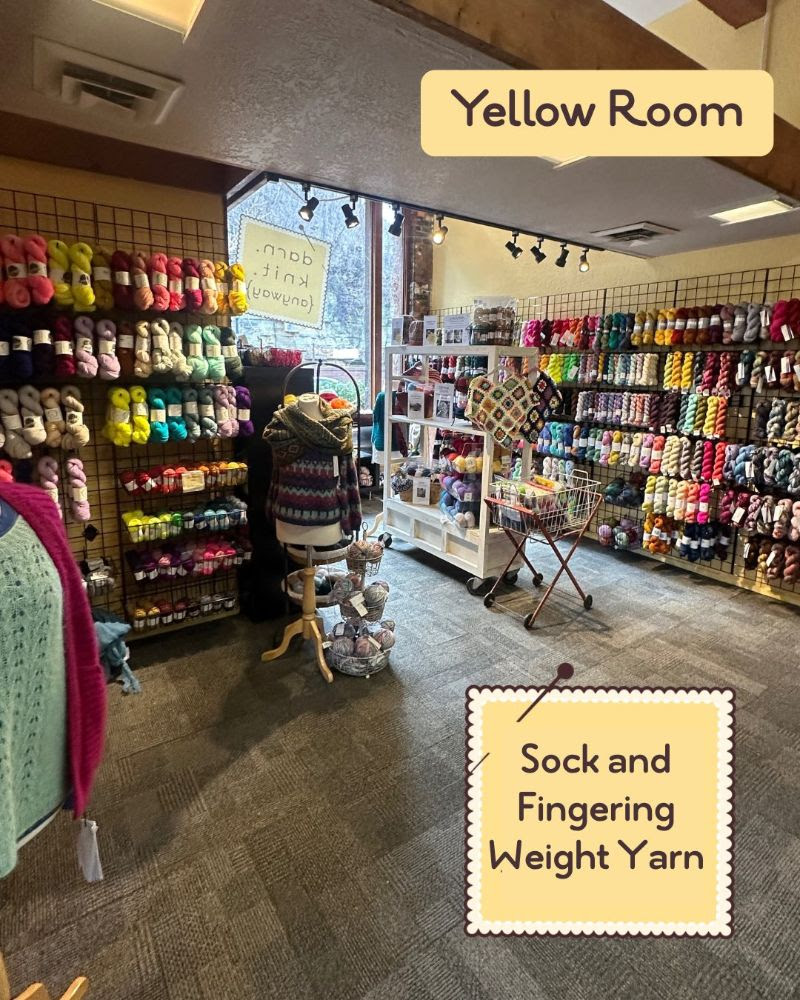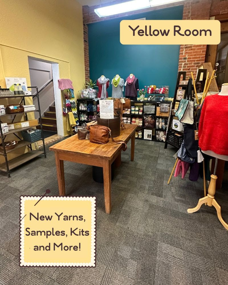 We rearranged the shop in April, moving the fingering weight yarn downstairs and the bulky weight upstairs.