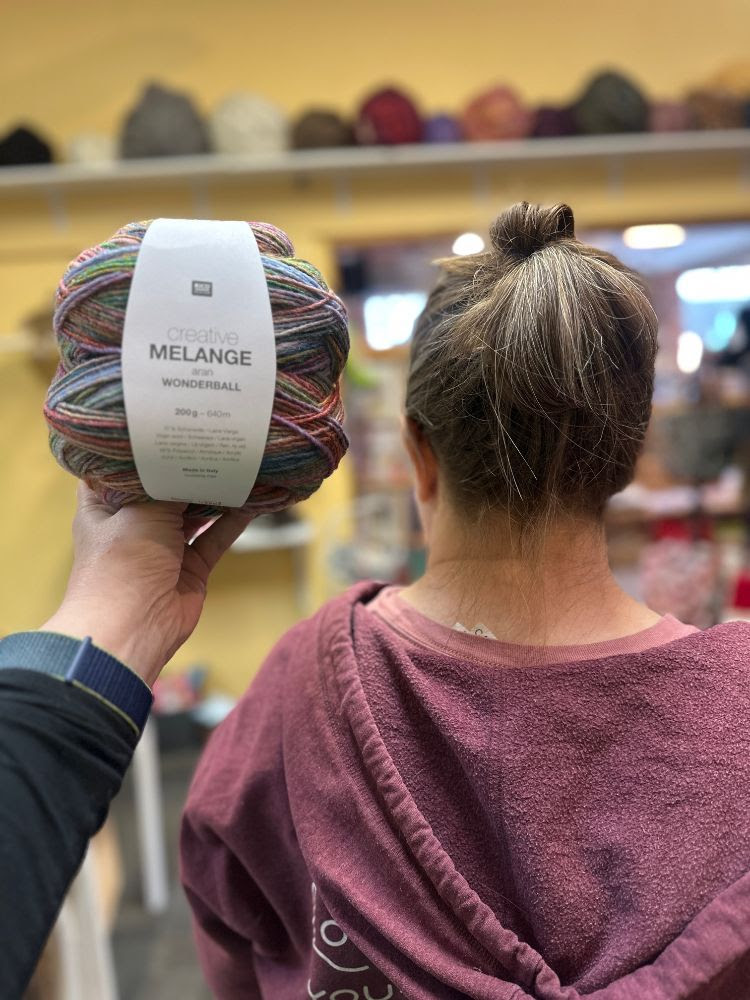We started stocking a new yarn in January that was as big as Jeri’s head.